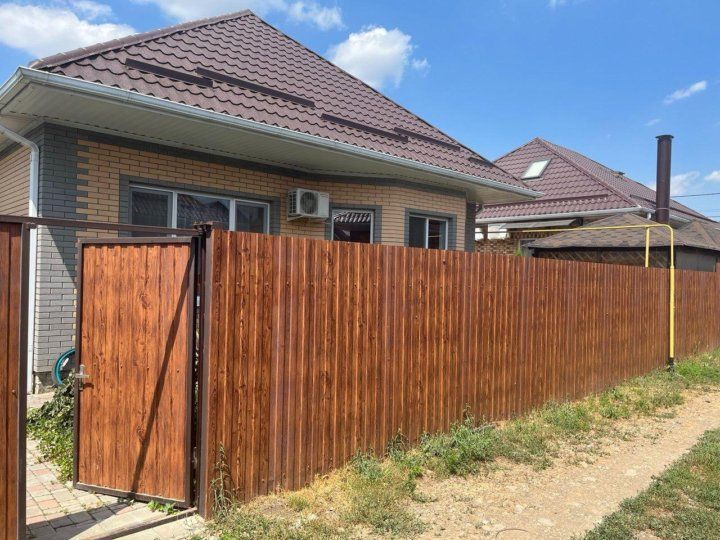 Описание дома: — Площадь: 80 м² — Материал: газоблок + облицовочный кирпич — Этажность: 1 этаж + возможность обустроить мансарду (лестница установлена, черновой пол и утепление готовы) Планировка и интерьер: — 2 светлые спальни — Эркерная гостиная — Просторная кухня с техникой и мебелью (может быть оставлена по договорённости). Санузел в доме (выполнен в пастельных тонах) — Коридор, кухня и санузел с тёплыми полами — Кондиционеры установлены Коммуникации: — Отопление: газовое — Электроснабжение: 15 кВт, 3 фазы Вода: скважина — Канализация: выгребная яма Двор и участок: — Качественная тротуарная плитка (толщина 5 см) — Лаунж-зона за домом для отдыха и вечеров с семьёй Забор из металлопрофиля, откатные ворота Инфраструктура: — Школа, детский сад, магазины, аптеки — в шаговой доступности — Строится новая поликлиника — Район тихий, соседи порядочные Дополнительно: — Есть возможность оборудовать мансардный этаж полезной площадью более 40 кв.м (высокая крыша, установлена лестница на мансарду, на самой мансарде уложен черновой пол с теплоизоляцией – минвата) — Есть ещё один дом на соседнем участке — удобно для проживания рядом с родственниками или как инвестиция (гостевой дом, аренда и т.д.)