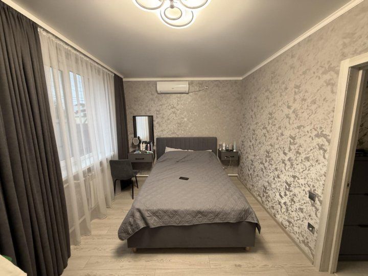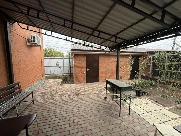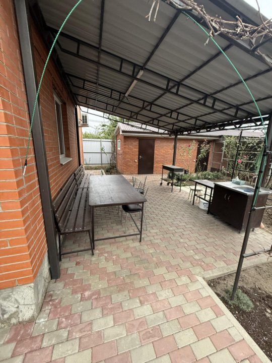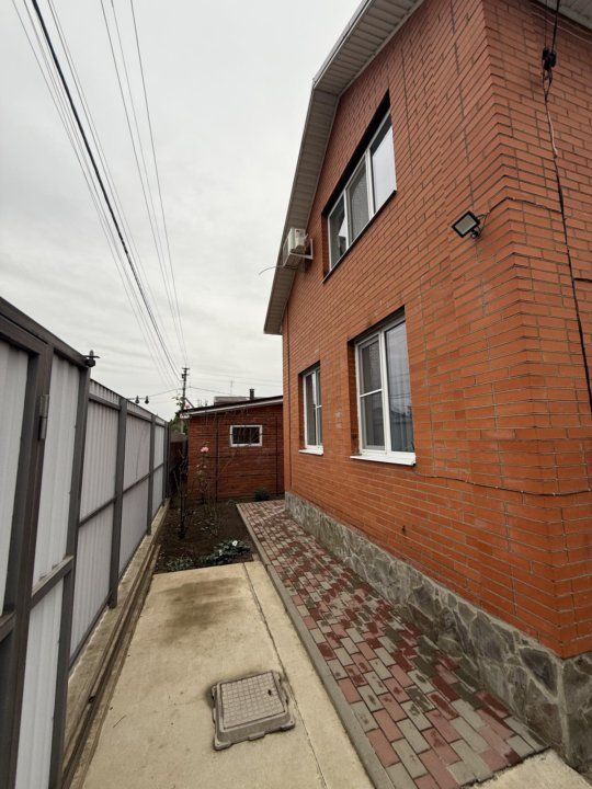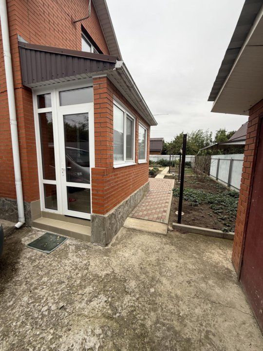 Продается угловой кирпичный дом, 2016 года постройки. Дом построен полностью из кирпича с утеплителем из пенопласта. Зимой - тепло, летом - прохладно. Удобная планировка, 2 этажа: 1 этаж - спальня 20 кв м, кухня-коридор 35 кв м, совмещенный санузел полностью в кафеле, 2 этаж - 2 комнаты (1 изолированная) по 15 кв м, застекленная веранда-прихожая. Удобная бетонная лестница на второй этаж. В 2024 году сделан свежий евро ремонт, везде полы плитка и ламинат, новая мебель во всем доме, при продаже все остается, включая некоторую бытовую технику. Присутствуют придомовой навес с мангальной зоной. Земельный участок 4 сотки, на котором находятся хорошие кирпичные постройки (с ремонтом внутри: кладовая, сарай, вольер), насаждения (виноград, малина, инжир, клубника, клумбы с парковыми розами). Заезд на 2 машины, подъезд к дому хороший, широкая улица, забор высокий металлопрофиль с откатными воротами. |